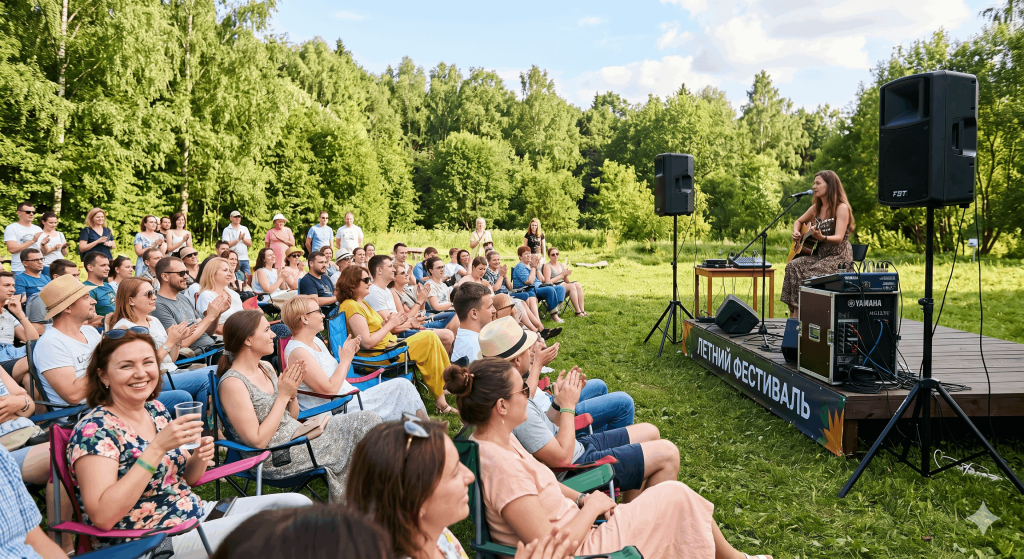 Открытые площадки — это вообще отдельный вызов для звукорежиссера. На улице нет стен, которые отражали бы звук, поэтому почти вся энергия колонок уходит в небо или в пространство. Следовательно, мощность системы придется увеличивать минимум на 30–50%. Кроме того, ветер создает шум в микрофонах, а звук, отражаясь от соседних зданий, возвращается с задержкой, создавая неприятное эхо. Именно поэтому для мероприятий на свежем воздухе профессионалы обязательно используют радиосистемы и направленные микрофоны, а также берут оборудование с хорошим запасом по громкости.