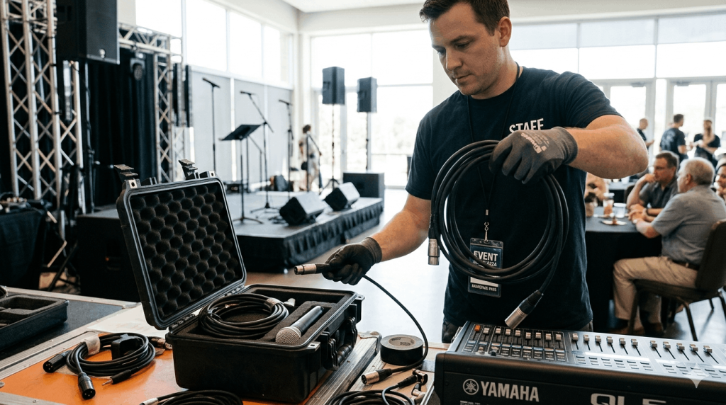 План тестового прогона очень прост. Сначала включите музыку и пройдитесь с ней по всему периметру зала. Ваша задача — найти «мертвые зоны», где звука почти не слышно, и, если возможно, скорректировать угол наклона колонок. Затем попросите помощника говорить в микрофон, а сами встаньте в самый дальний угол. Слова должны быть разборчивыми, без эха и гулкости. И наконец, проверьте все микрофоны и кабели на надежность: слегка дерните за провод, покрутите разъем — нет ли треска или пропадания сигнала. Профессионалы из WorkShow, например, не просто привозят технику, а проводят полноценное тестирование с замерами уровня звука, чтобы вам не пришлось краснеть за «писк» или «гудение» прямо во время церемонии.